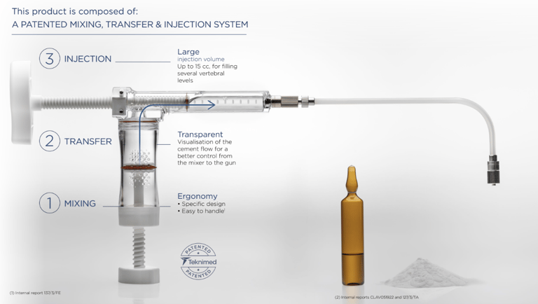 Il est recommandé d'utiliser des ciments du laboratoire TEKNIMED.Injection du ciment :